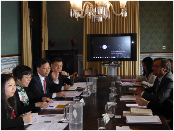 会议在科英布拉大学校长办公楼举行。科英布拉大学校长Joao Gabriel Silva,副校长Joaquim Carvalho,我校副校长郭清,北京第二外国语学院副校长朱佩芬,及其他理事会相关人员参与了本次理事会议。
