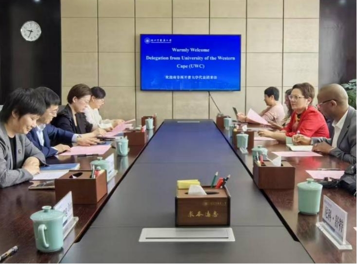 范骁辉代表学校对代表团来访表示欢迎,并简要介绍了学校办学情况。他指出,我校与西开普大学合作根基深厚。自2019年起携手共建非洲大陆首家中医药特色孔子学院,成为中非教育文化交流的重要里程碑。他希望双方以此次访问为契机,进一步拓展师生互访、深化科研协同、创新中医药非洲本土化模式,让中医药更好惠及南非及非洲民众,续写中非友谊新篇章。