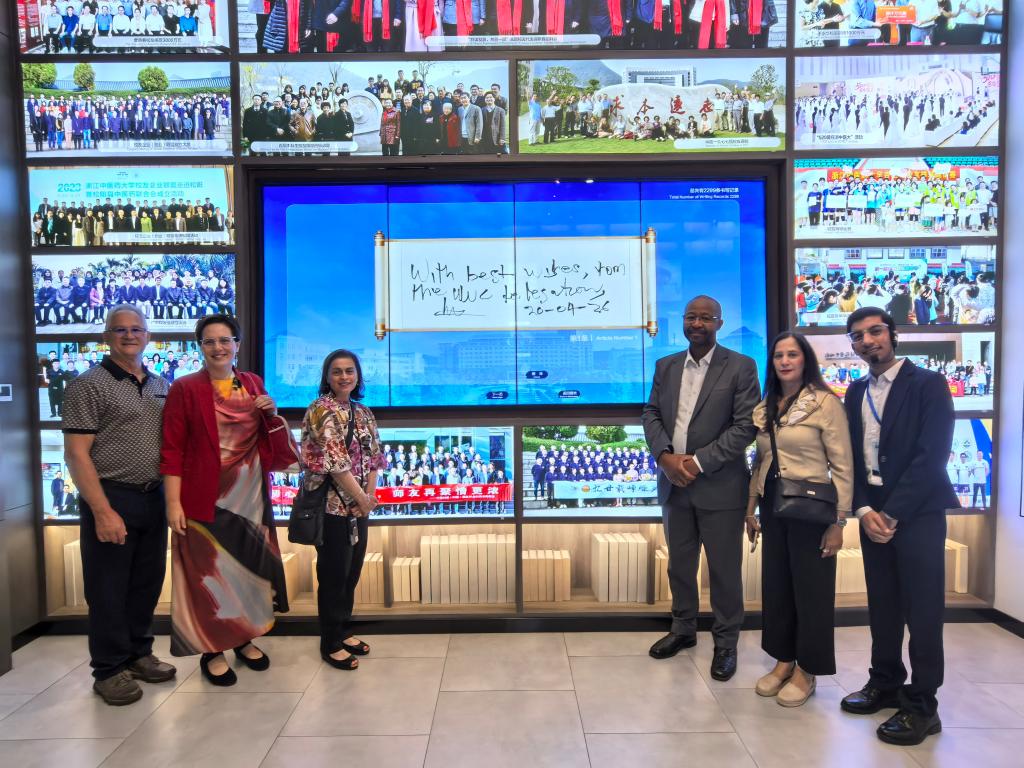 蒙瓦比西·拉勒拉拉副校长一行还参观了浙江中医药博物馆,并在留言墙上寄语:南非西开普大学代表团敬呈美好祝愿 万事顺遂!
